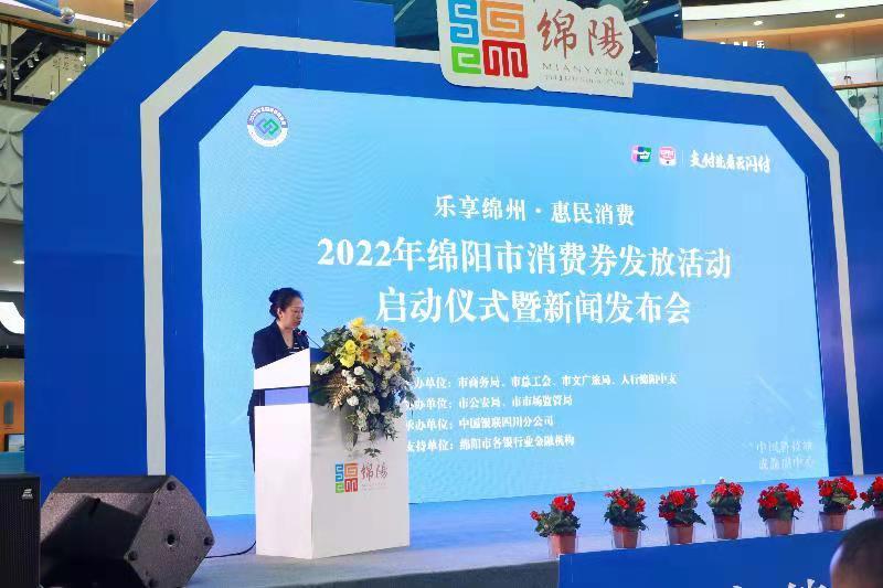 2022年4月29日,“樂享綿州·惠民消費(fèi)”—2022年綿陽市消費(fèi)券發(fā)放活動(dòng)在涪城區(qū)萬達(dá)正式啟動(dòng)。市人民政府副市長李南希出席并宣布啟動(dòng),市商務(wù)局、市總工會(huì)、市文廣旅局、市公安局、市市場監(jiān)管局、人民銀行成都分行、人民銀行綿陽中心支行、中國銀聯(lián)四川分公司,以及市內(nèi)各銀行業(yè)金融機(jī)構(gòu)、參與商戶、媒體代表出席本次活動(dòng)。